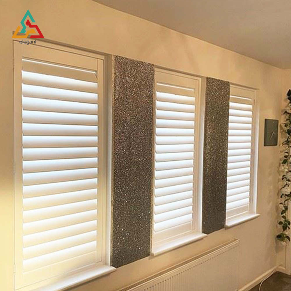 We have the most popular colors such as Snow White, Classic White, Bright White, Warm White and Warm White Plus White in our factory, and offer indoor sliding Blackout Plantation Shutters in different colors.