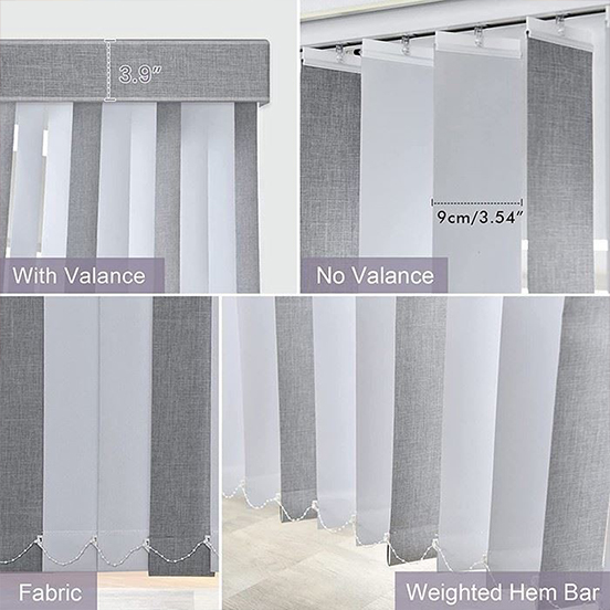 • Slat: Slat can be made with different materials, PVC, metal, wood and fabric are all can be the material for the Dreamlike Vertical Blinds Valance, color do not have any limited so you can get any colors from us for the blinds including Vertical Blinds Blue, Vertical Blinds Brown and Vertical Blinds Gray.